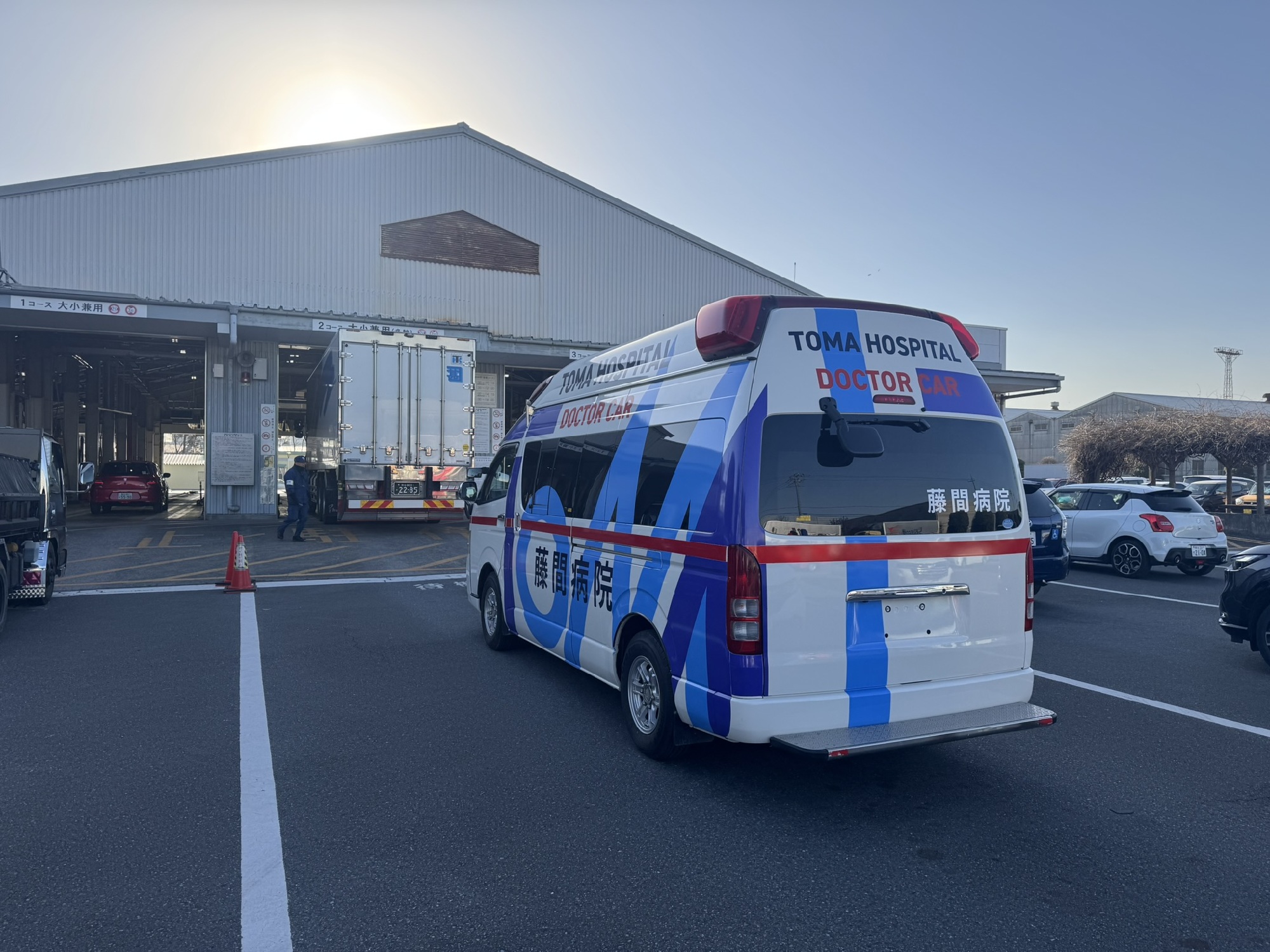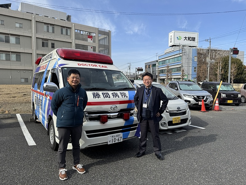 ピッカピカでド派手な救急車に、職員の方たちもとても喜んで下さいました。
