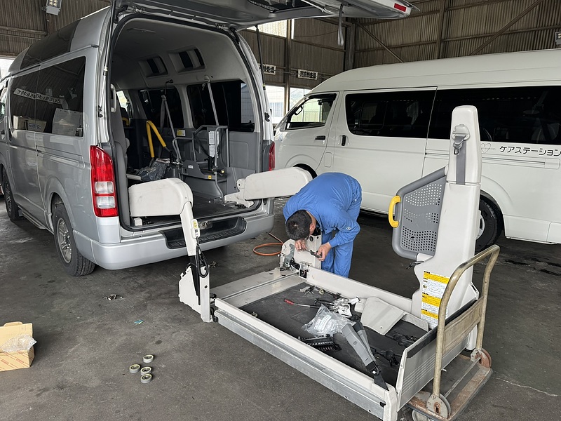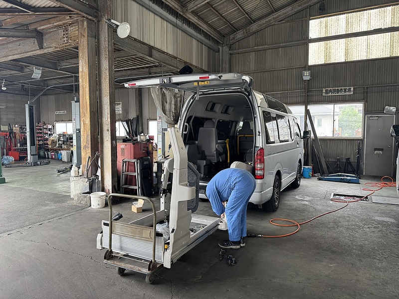 ハイエースの車いすリフトの調子が悪くて・・・・。