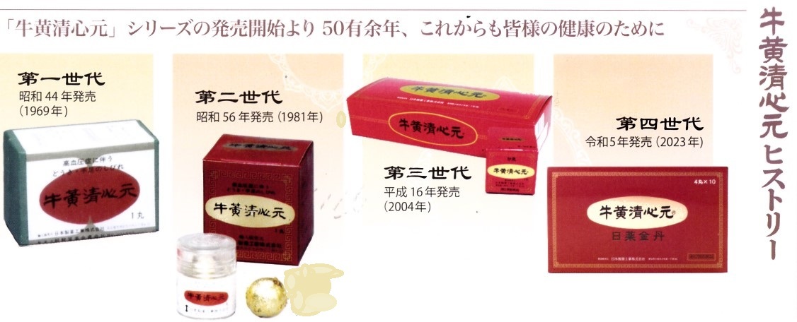 ※現行の「牛黄清心元」の1丸は、以前の1/4丸分に相当します。