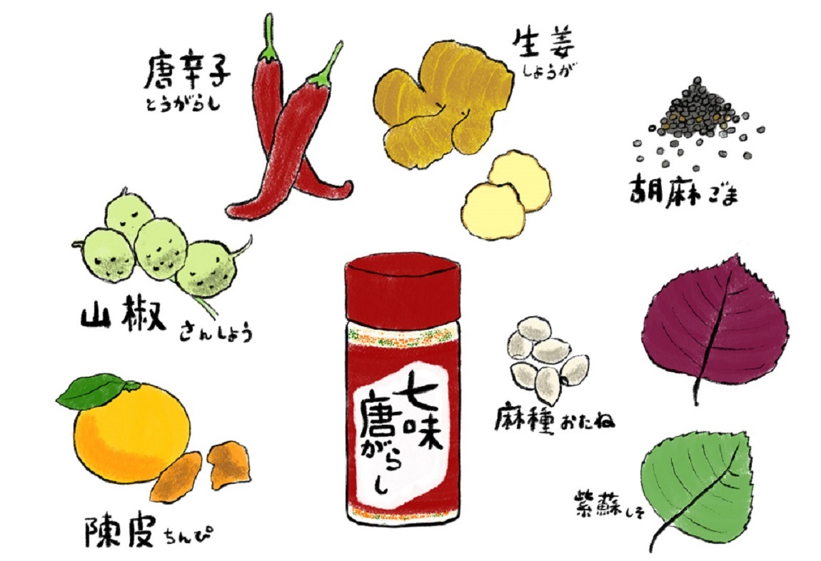 ※ミカンの皮=「陳皮」・生姜=「生姜(ショウキョ)・乾姜(カンキョ)」・紫蘇=「紫蘇葉・紫蘇子(紫蘇の実)」。
