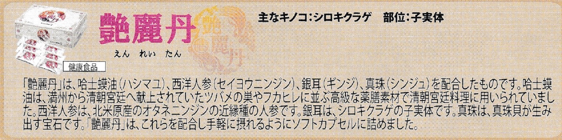 ※艶麗丹に含有されているキノコエキスは「シロキクラゲ」