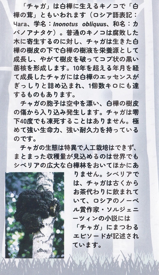 《機能性マッシュルームの一つが『チャーガ=シベリア霊芝』》