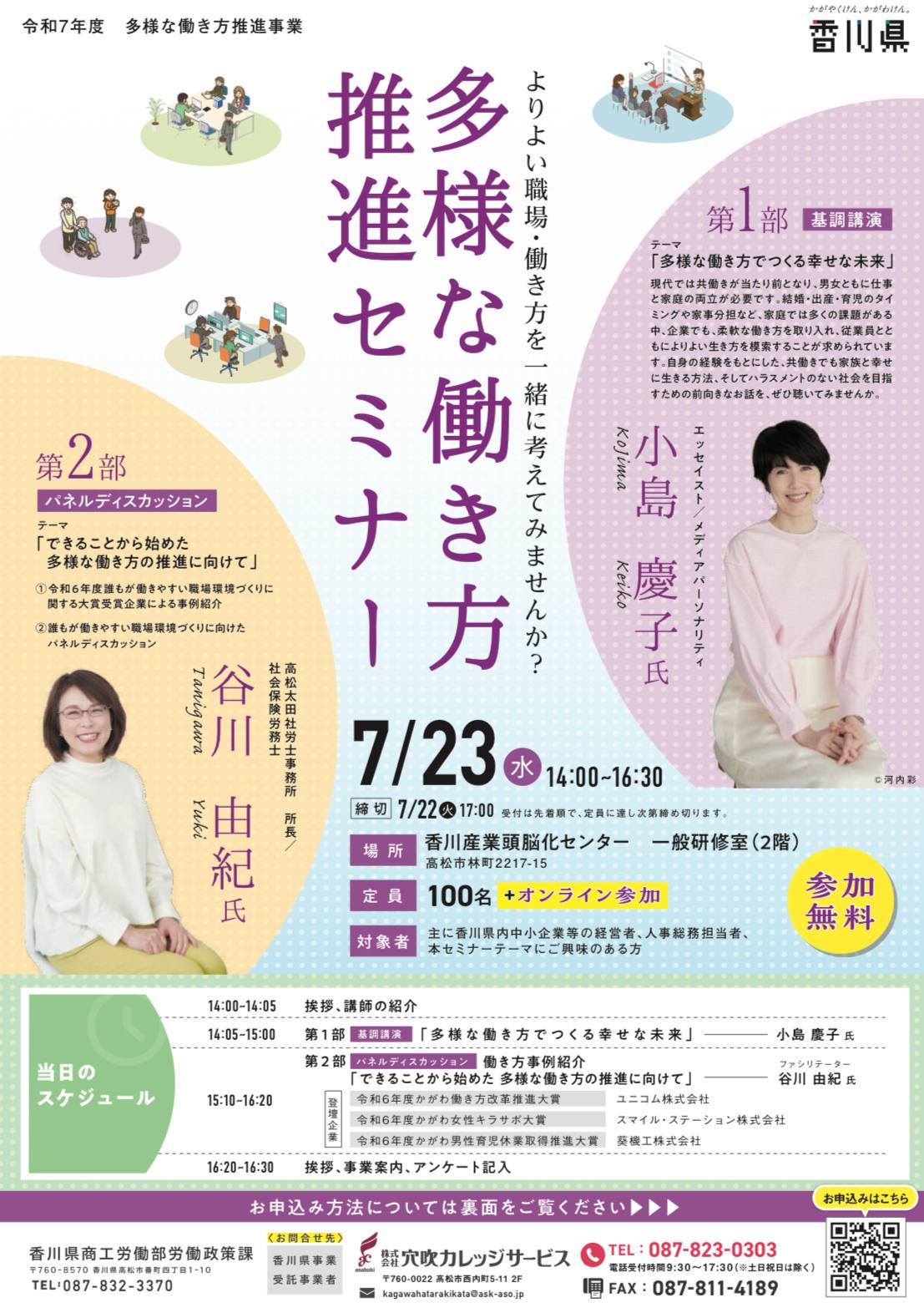 香川県主催「多様な働き方推進セミナー」が開催されます。