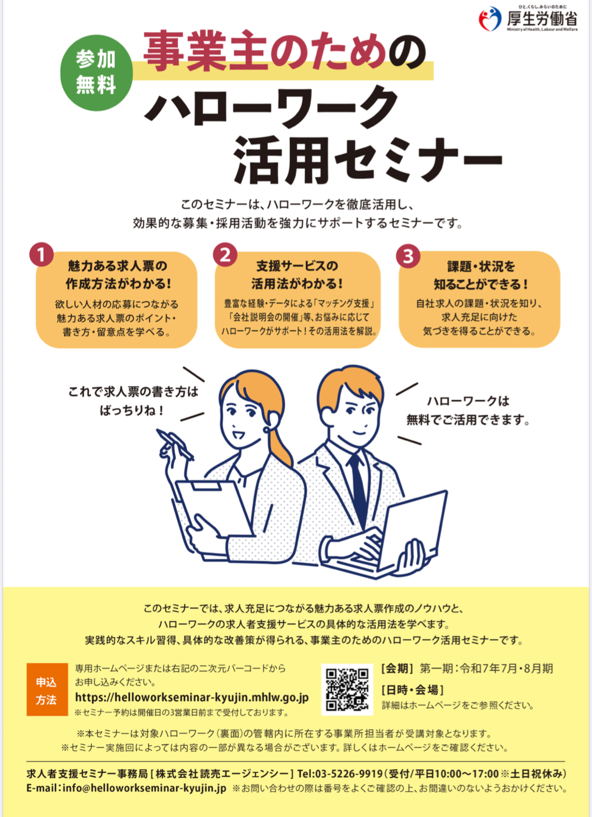 今年度、厚労省委託事業「事業主のためのハローワーク活用セミナー」にて、