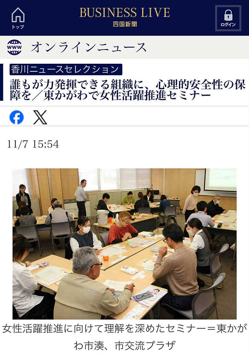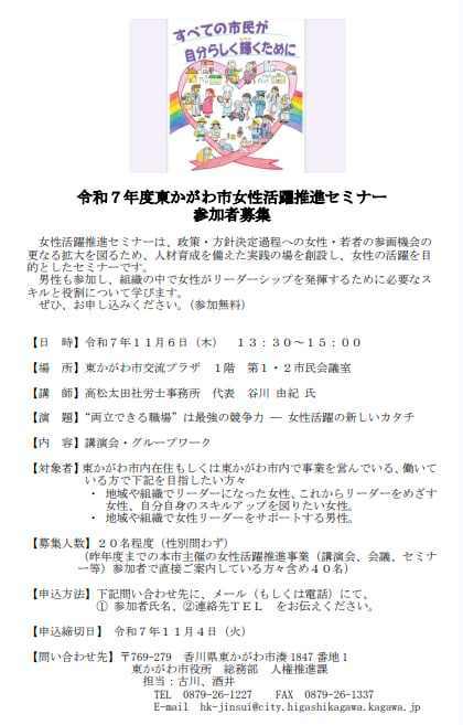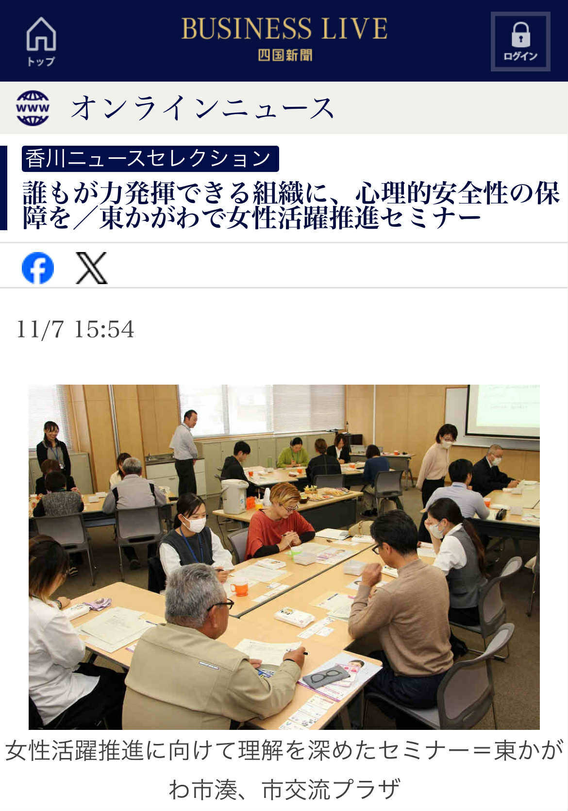 先日、東かがわ市主催の「かがわ市女性活躍推進セミナー」が開催され、講師を務めさせていただきました。
