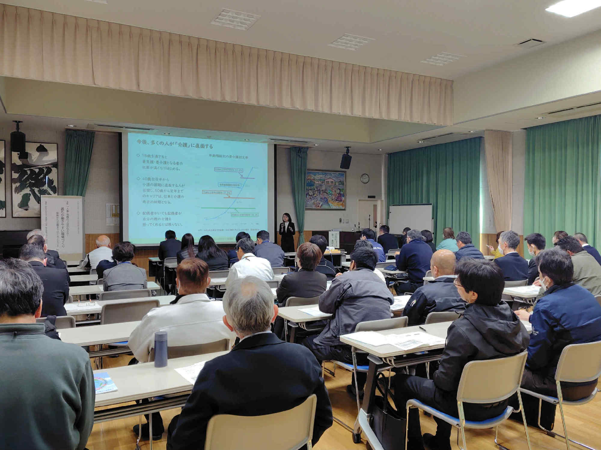 今年度より法改正で義務付けされた「介護と仕事の両立支援」の重要性にも触れながら、