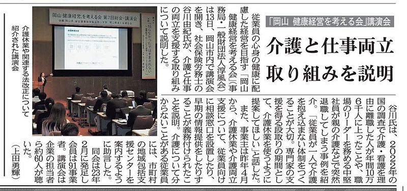 先日、「岡山 健康経営を考える会」様よりお声がけをいただき、