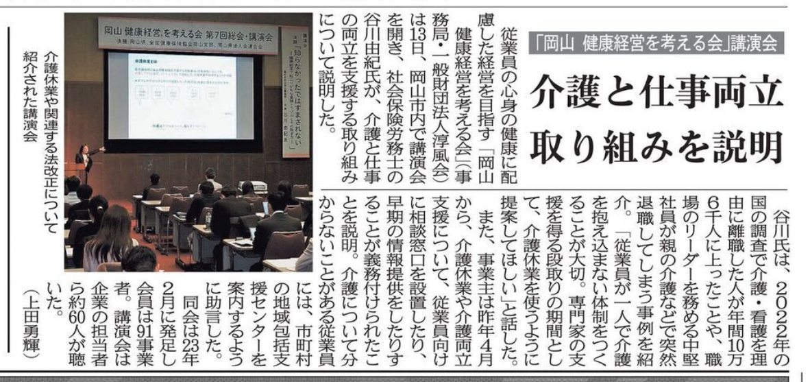 そこで、昨年4月の法改正を踏まえ、「仕事と介護の両立支援」を中心にお話しさせていただきました。