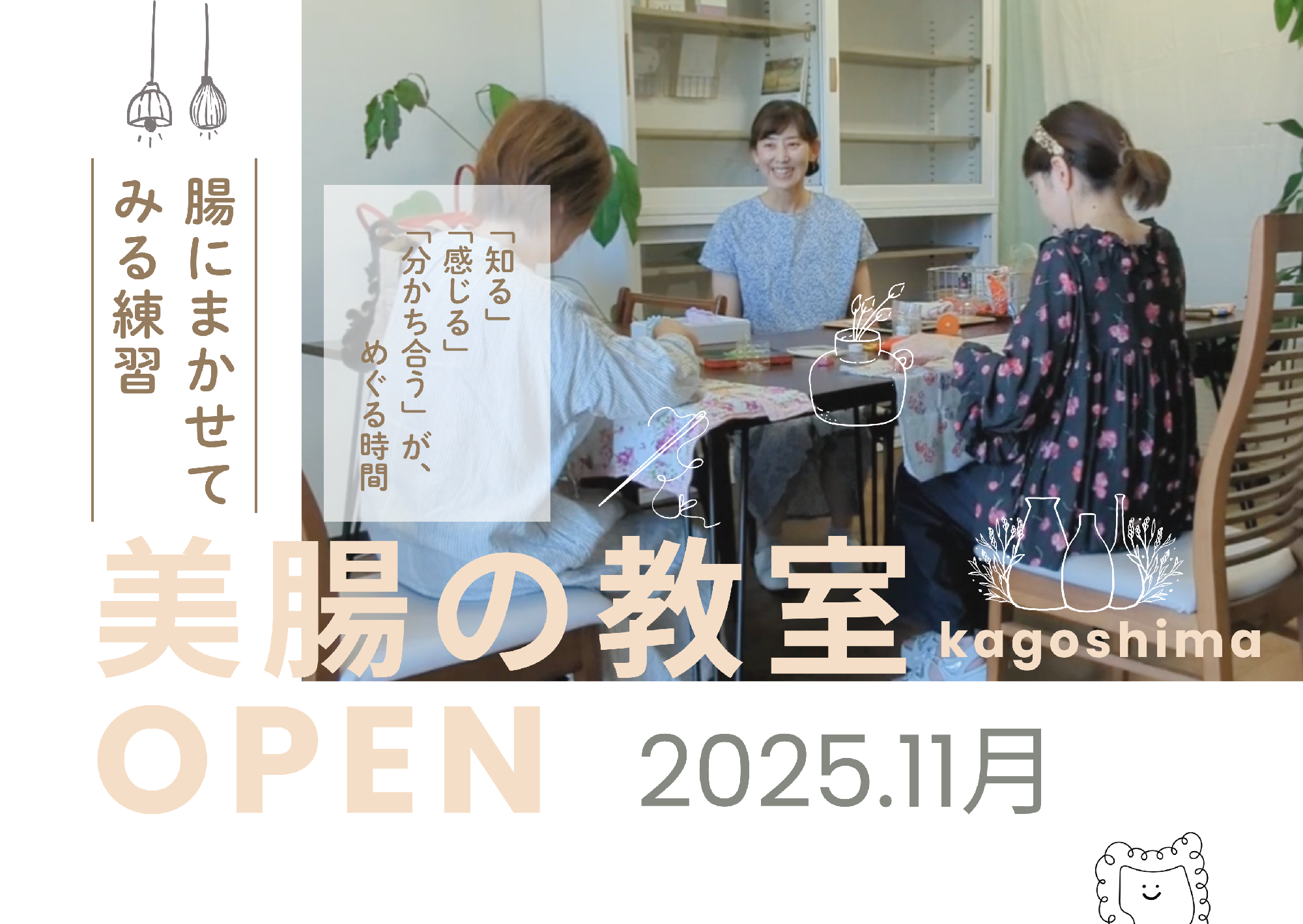 11月から[美腸の教室]を始めます^^![11月から[美腸の教室]を始めます^^ 〇場所:鹿児島市中央町共研公園前 〇オープン:月・木曜日14:00~16:30、日曜日(第2日曜以外) 〇主な内容: ・月曜・木曜 14:00〜16:30 気軽なオープンデー (予約不要、腸活セルフケアの質問・相談など自由参加。) ・第2日曜 月イチWS「腸にまかせてみる練習」シリーズ (要予約、テーマごとの体験型美腸ワークショップ) ・第1・第4日曜 美腸の学び(検定講座対策)、ゲストティーチャー (学びの広がりと資格取得サポート) 11月から[美腸の教室]を始めます^^ 〇場所:鹿児島市中央町共研公園前 〇オープン:月・木曜日14:00~16:30、日曜日(第2日曜以外) 〇主な内容: ・月曜・木曜 14:00〜16:30 気軽なオープンデー (予約不要、腸活セルフケアの質問・相談など自由参加。) ・第2日曜 月イチWS「腸にまかせてみる練習」シリーズ (要予約、テーマごとの体験型美腸ワークショップ) ・第1・第4日曜 美腸の学び(検定講座対策)、ゲストティーチャー (学びの広がりと資格取得サポート)](/elements/kagoshima/profiles/hahairo/images/cache/image_5309685_800_0.png)