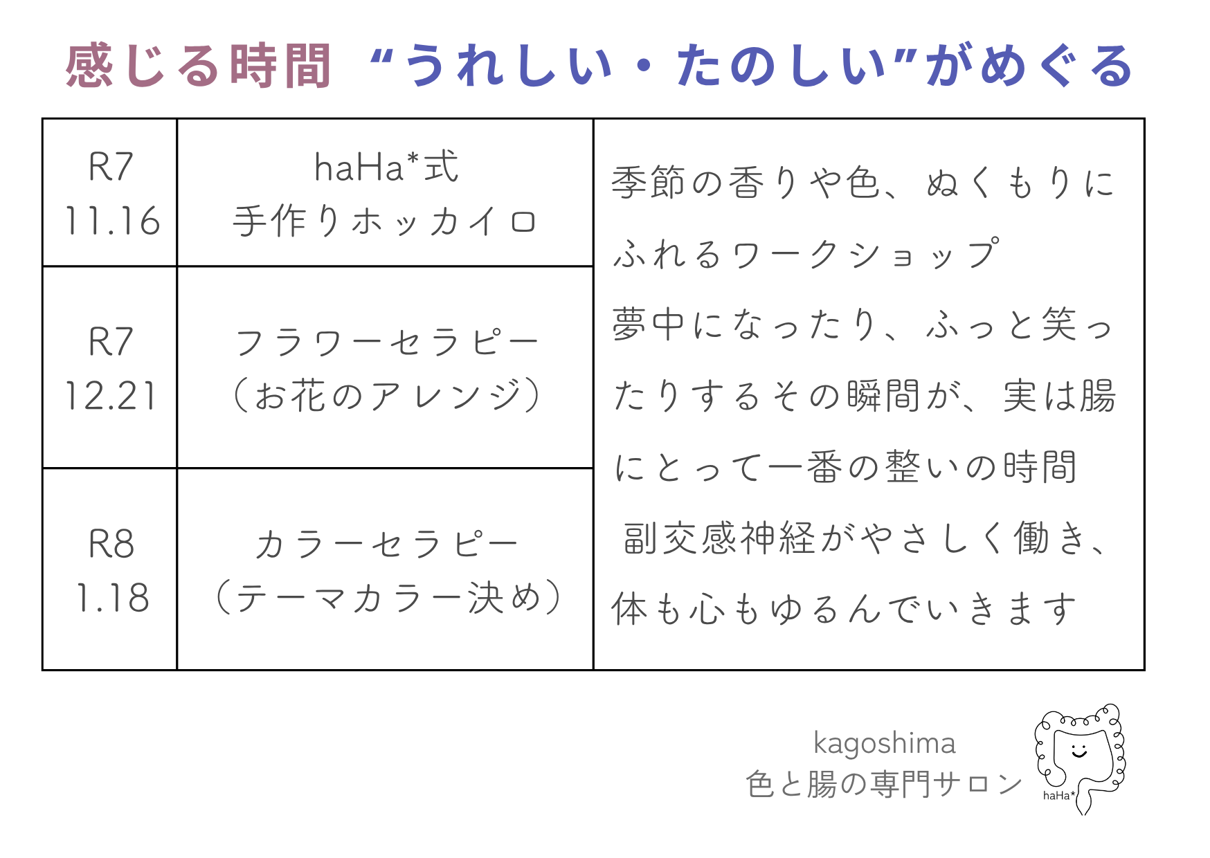 11月Start!「美腸の教室 ~腸にまかせてみる練習~」