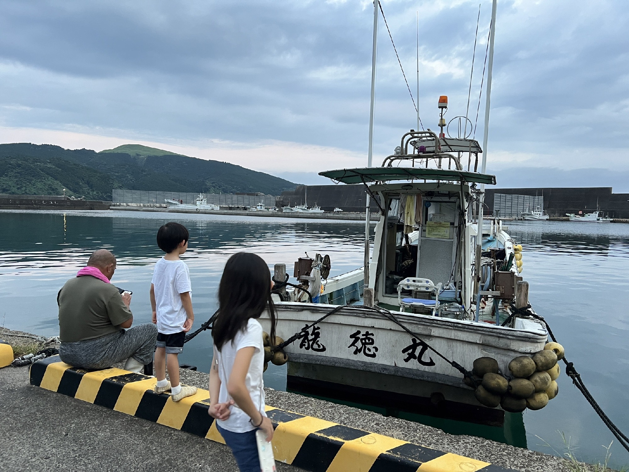 初めての体験、漁船を使っての夜のトビウオ漁。いろいろあったけれど、とにかくなんとか出航にこぎつけた私たち一家。