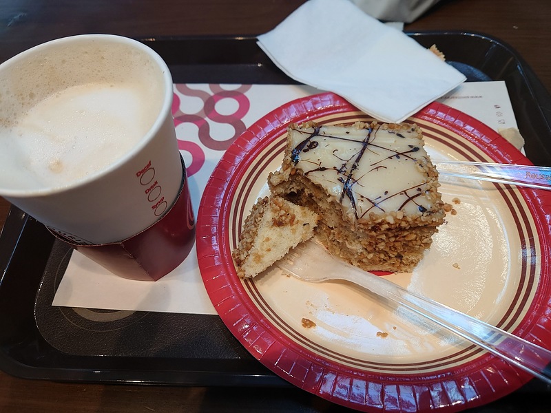 トホホの面持ちで口に運んだケーキとカフェラテ