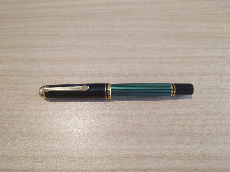 あとペリカンのスーベレーン600という製品は、グリーンストライプのボディで、このメーカーを代表する一本です。以前、いつも通っていた六本木の「蔦屋」の文房具売り場が改装の際に、セール価格になっていたものを購入したのです。