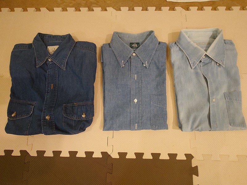 デニム素材のシャツは、生地の薄いものはシャンブレーシャツとも呼ばれるようです。インディゴ染めでワイルドな臭いのするこのシャツは、やはり好きな服の一つでもあります。顧客と会わない日などは、ちょっとはずしてこれを仕事に着て行ったりしています。