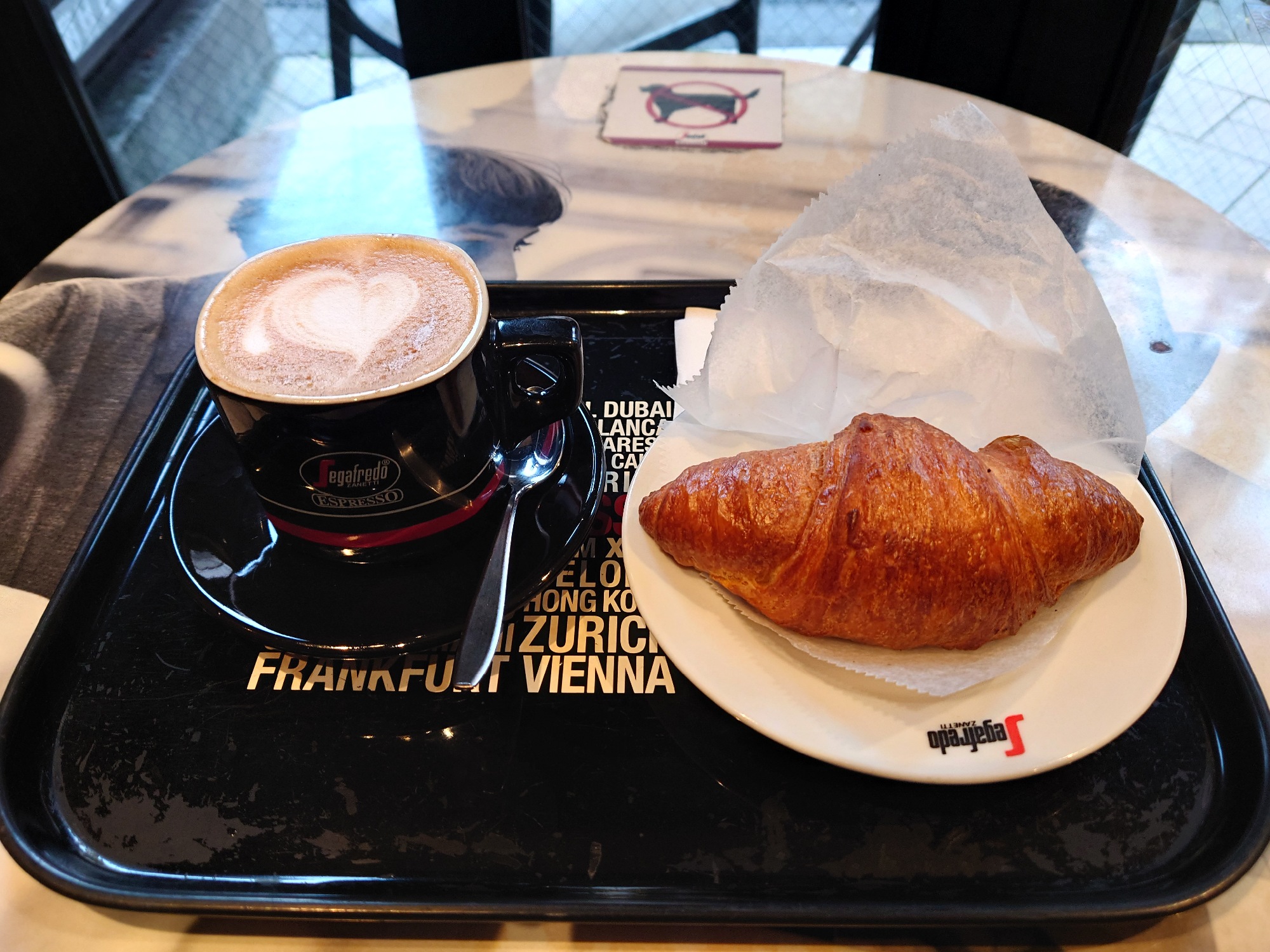 その後、お正月でも開いている唯一のカフェに転がり込んでホットカフェラテとクロワッサンの朝食で温まります。