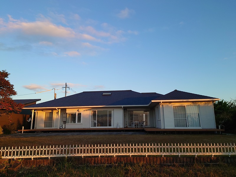 夕日を浴びる我が家