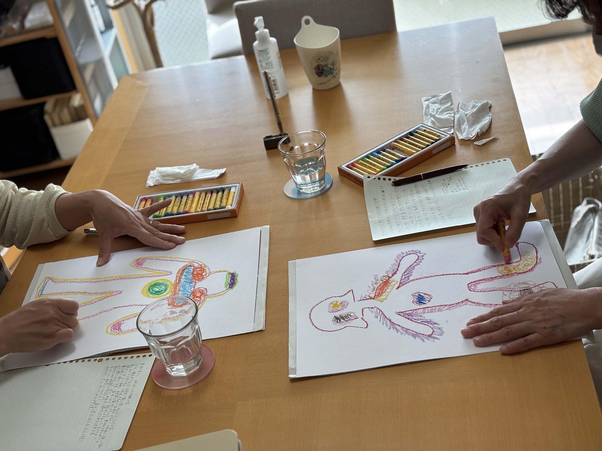 色や描画を使ったワークを行うことで、自分の描画を客観視して、ハッとさせられる事は多々あります。