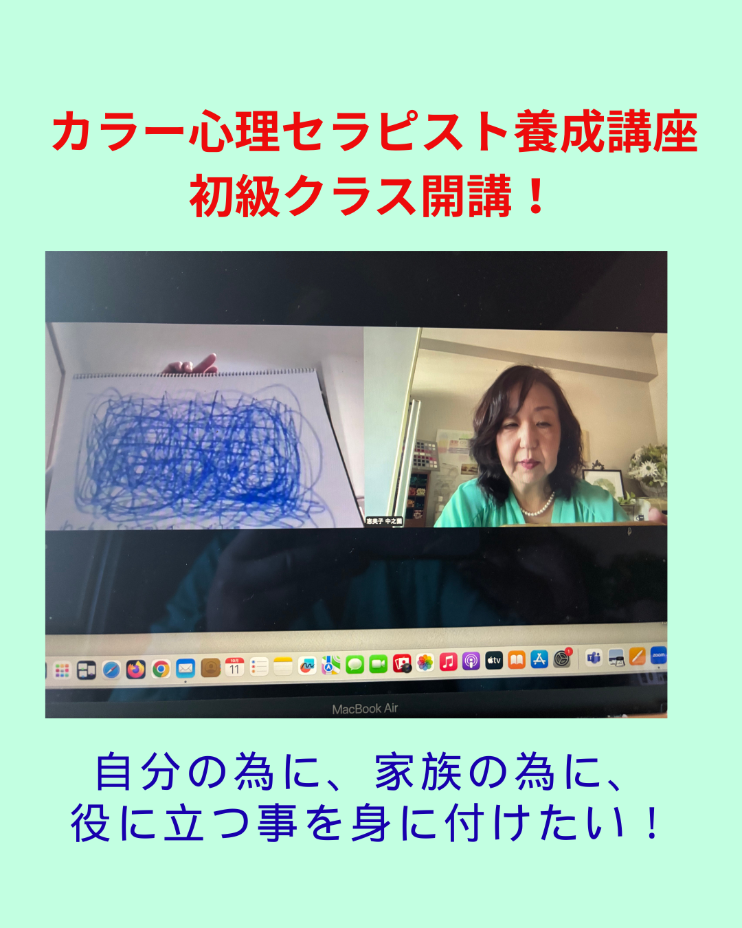 昨日から、オンラインにて、カラー心理セラピスト養成講座・初級クラスが開講になりました。