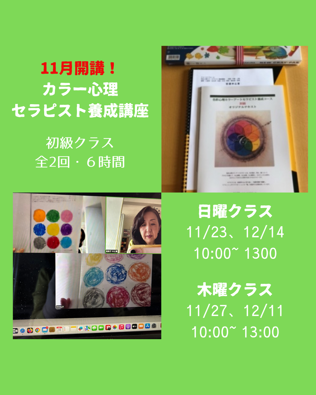 昨日は、オンラインにて、カラー心理セラピスト養成講座・初級クラスの2回目が行われました。