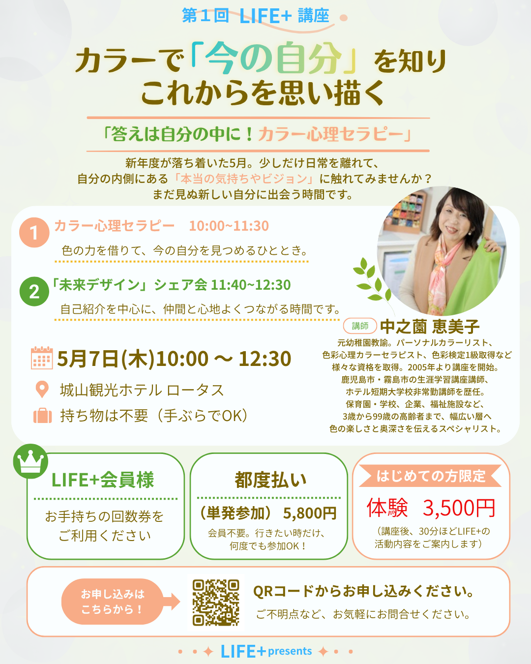 ① 体験講座:3,500円(税込) 初めてLIFE+に参加される方への特別価格です。