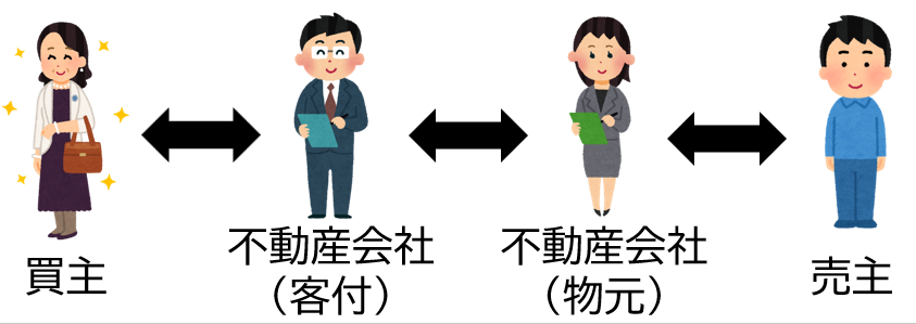 下図のような形になります。不動産業者は物元でもあり、客付けでもあります。