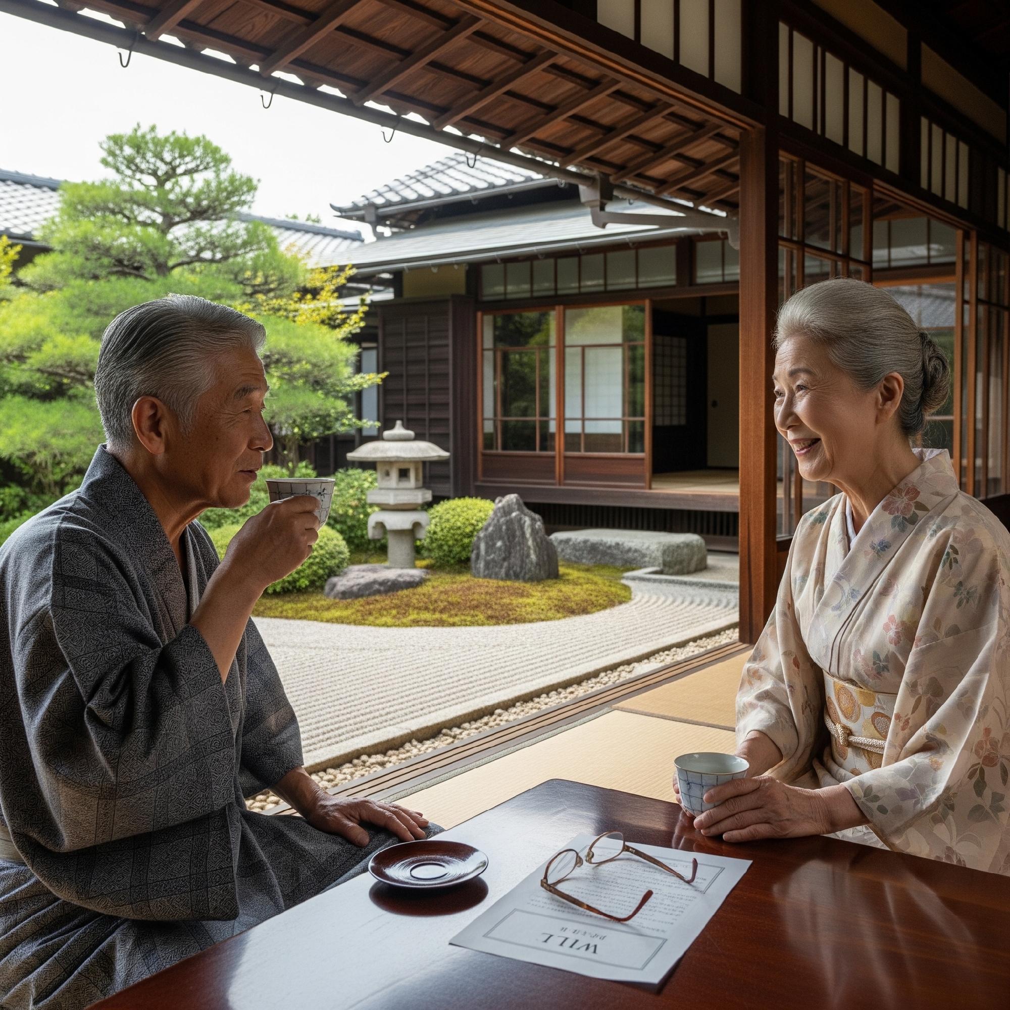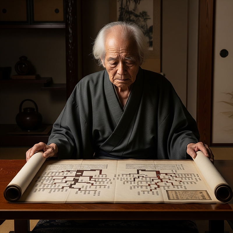 ご主人 (独り言): 「...昔から家族の歴史を大切にしてきた。わしも、大切な家族に何か伝えたいことはないだろうか...」