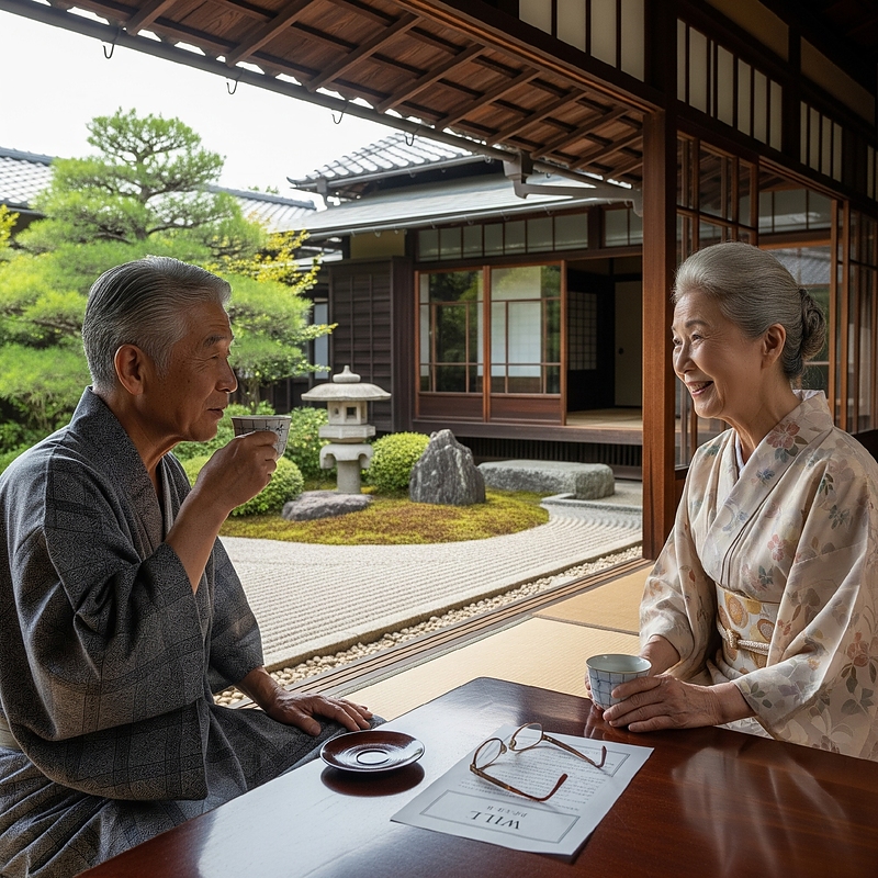奥様: 「ねえ、あなた。最近は遺言書を書く人が増えているんですって。」