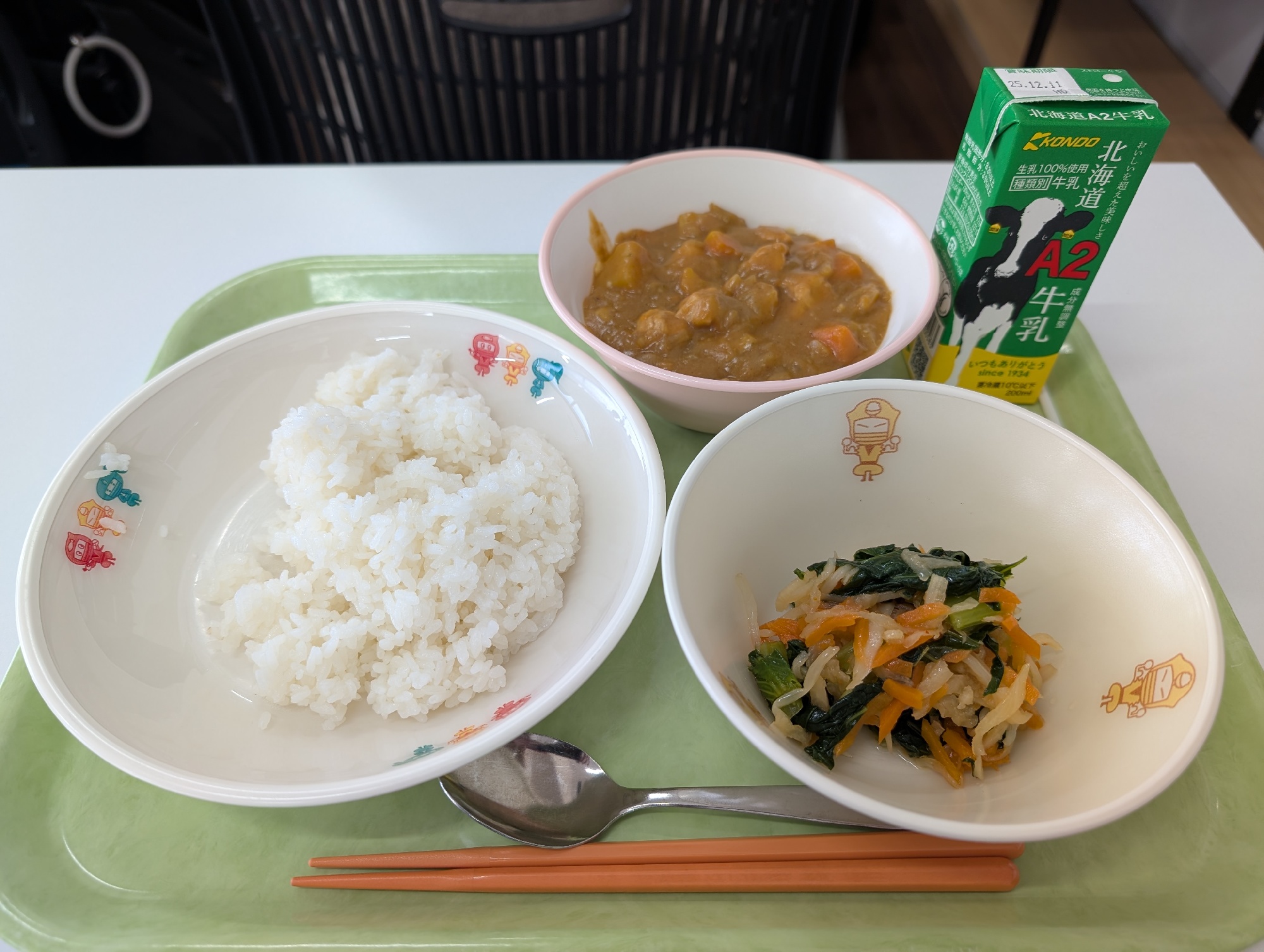 この日は献立のカレーもいただきました。寒川町で収穫されたさつまいもを使用したさつまいもカレーで、さつまいもの甘さがカレーのアクセントになっていて、とても美味しかったです。ご馳走でした。