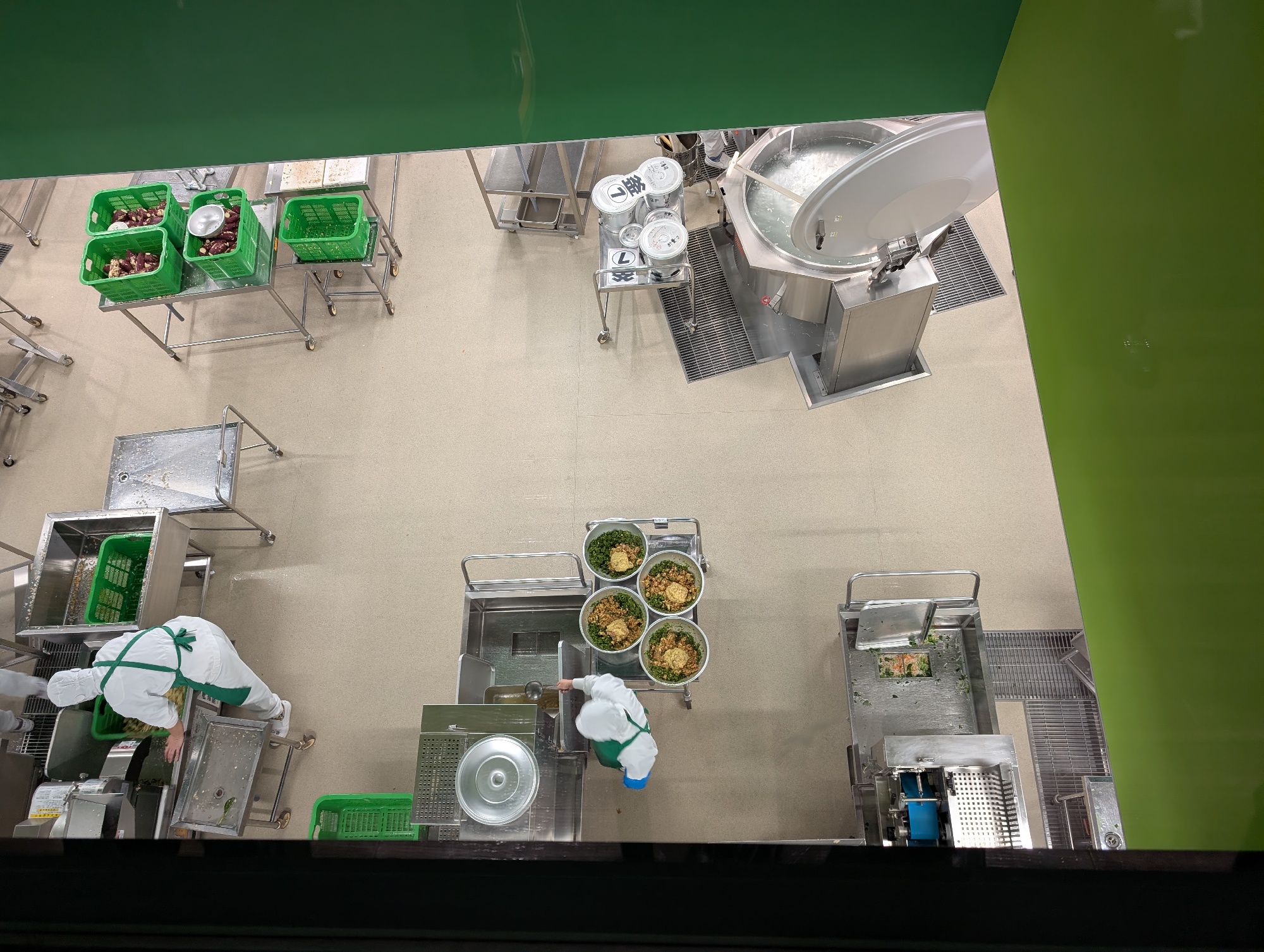 寒川学校給食センターは2年前に完成した施設で寒川町の小中学校8校の給食約4200食の完全給食を提供しています。多くの方が利用できる施設と言う考えを基本として、2階は見学通路と3階は実習室と会議室兼試食室になっています。