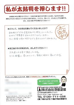 ★どうして、池田塗装を選んでくださいましたか?自社施工はできる塗装会社から探すことにしました。その中で受賞歴や会社の大きさに注目し、さらに見積り時の対応なども良かったので決めました。★施工後の今のお気持ちを、おしえてください!!注文通りの出来で満足しています。とても綺麗に塗られていて、家族で眺めて喜んでいます。