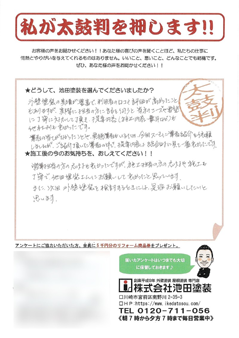 ★どうして、池田塗装を選んでくださいましたか?