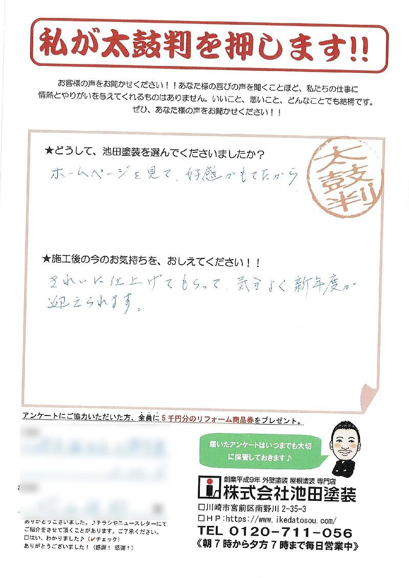 ★どうして、池田塗装を選んでくださいましたか?ホームページを見て、好感がもてたから★施工後の今のお気持ちを、おしえてください!!きれいに仕上げてもらって、気分よく新年度が迎えられます。・・・・・・・・・・・・・・・・・・・・・・・・・・・・・・・・・・・・・・・・