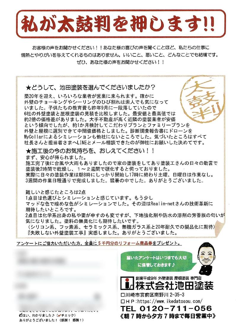 ★どうして、池田塗装を選んでくださいましたか?