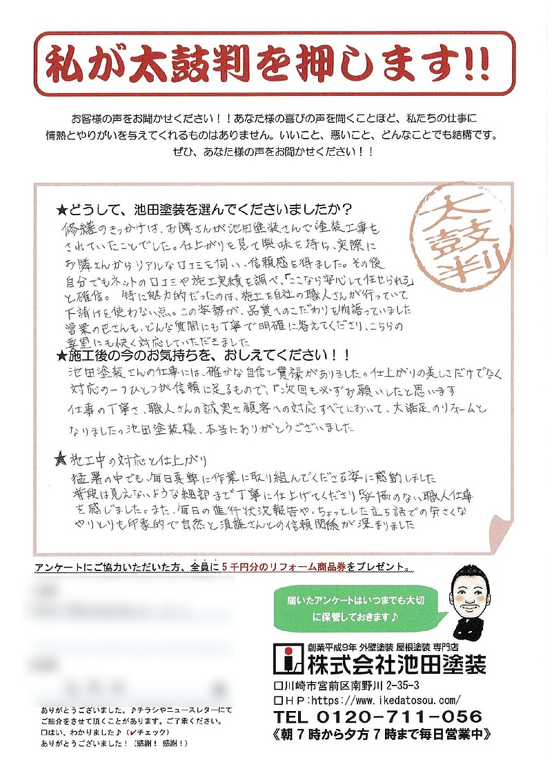 ★どうして、池田塗装を選んでくださいましたか?
