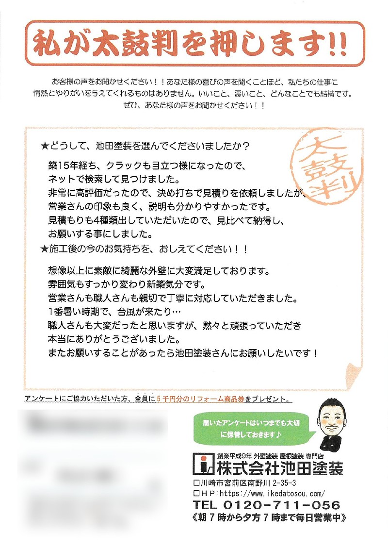 またお願いすることがあったら池田塗装さんにお願いしたいです!