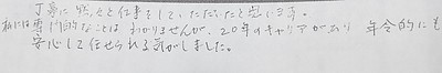 私には専門的なことはわかりませんが、20年のキャリアがあり年令的にも安心して任せられる気がしました。」