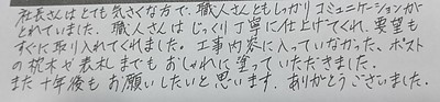 「丁寧に黙々と仕事をして頂いたと思います。