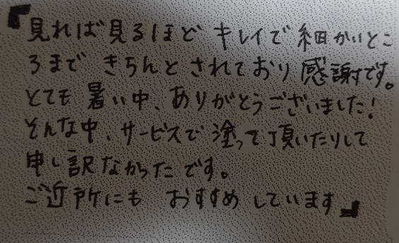 とても暑い中、ありがとうございました!そんな中サービスで塗った頂いたりして
