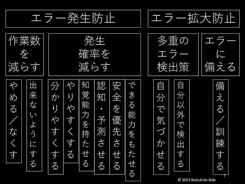 •技術的対策(センサー等)と人的対策(訓練・ダブルチェック)をセットで検討すること。
