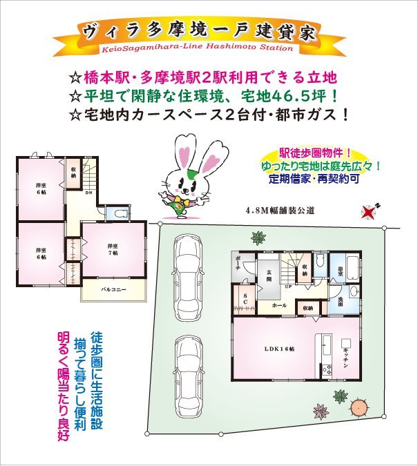 №2 京王相模原線「多摩境駅」・横浜線「橋本駅」2駅利用出来る一戸建て貸家