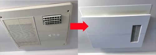 浴室の換気乾燥暖房機の交換工事をさせていただきました。今回、採用された 三菱のバス乾 24時間換気機能付換気扇は、室内の空気を循環させる仕組みでシックハウスや結露を防ぐ役割があり、安心快適にお使いいただけると思います。