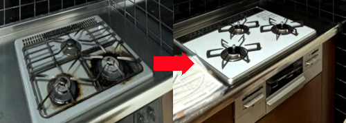 経年の劣化によりレンジフードとビルトインコンロの交換工事をご依頼いただきました。ビルトインコンロは、調理性能が高く、お手入れのしやすく、カラーバリエーションが豊富なリンナイ マイトーン選ばれたので、お好みのカラーのコンロで、見た目がスマートで快適にお使いいただけると思います。