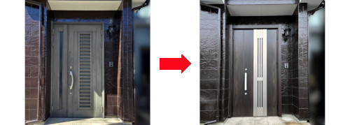 外壁と屋根の塗装工事と一緒に玄関ドアの交換工事をご依頼いただきました。