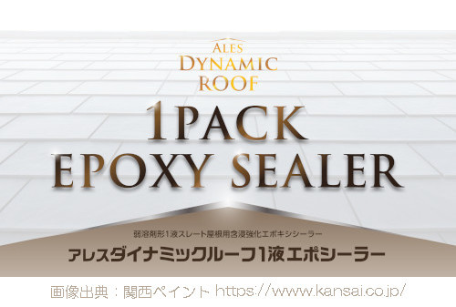 屋根用下塗り用塗料である弱溶剤形1液スレート屋根用含浸強化エポキシシーラー「アレスダイナミックルーフ1液エポシーラー」と、