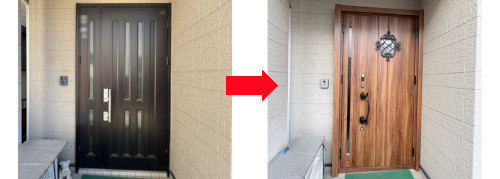 「玄関ドアのドアクローザーが壊れたので、玄関ドアの交換をしたい。」とのご依頼で、現場調査の後、交換工事をさせていただきました。リクシルの玄関ドア「リシェント」は、デザインも豊富で自分好みの玄関にイメージチェンジされまいた。また、今ある枠の上から、新しい枠を取り付ける「カバー工法」のため、お家を無理に傷めることなく、たった1日で玄関のリフォームが完成する上、最新機能で快適性と防犯性がアップ、ファミロックも付けられたので便利にお使いいただけると思います。