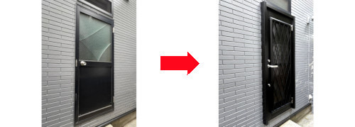 勝手口のドアの交換工事をさせていただきました。今回選ばれた、LIXILリシェント 勝手口ドア C型は、鍵が2か所あるツーロック仕様で、鎌付きデッドボルトで防犯対策も万全なので、安心してお過ごしになれると思います。