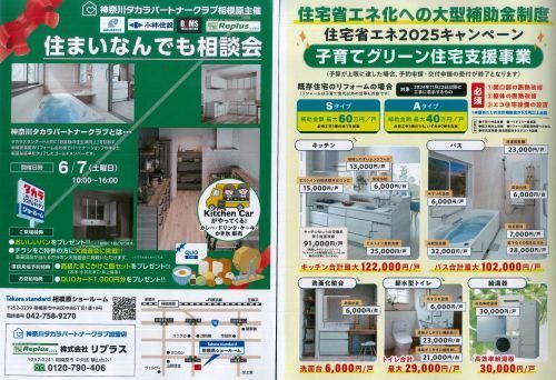 神奈川タカラパートナークラブ相模原主催の『住まいなんでも相談会』のお知らせです。