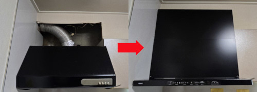 相模原市中央区矢部のH様邸にて、レンジフードの交換工事を行いました。