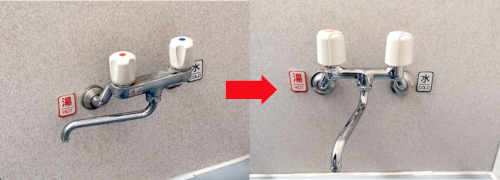 既存のものと同等タイプで操作性も変わらない KVK製 2 ハンドル混合水栓 をご提案し、そのまま採用いただき施工いたしました。