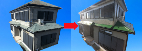 前回の塗装から約10年が経過し、雨漏りはないものの、屋根の塗膜剥がれや色褪せ、苔の発生が見られる状態でした。また、棟板金の釘浮きや、外壁目地コーキングのひび割れも確認されました。